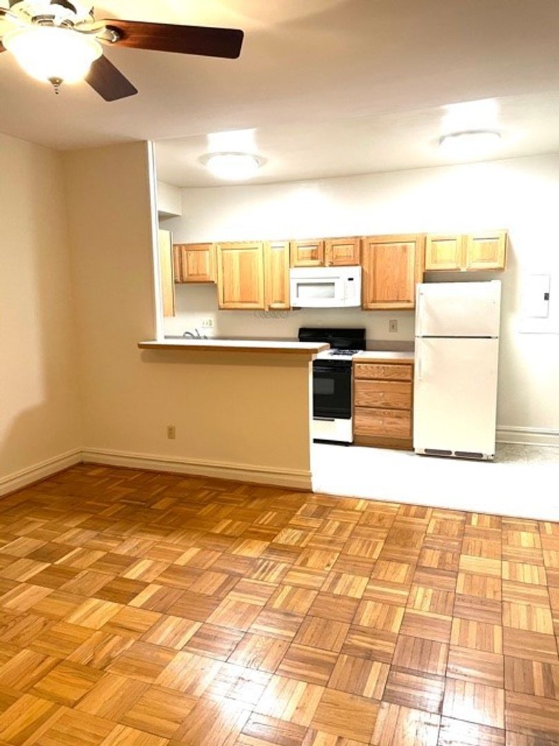 This charming apartment home features hardwood floors throughout, a renovated bathroom, and a remodeled kitchen complete with a microwave, dishwasher, gas range, and disposal — blending modern convenience with classic character.